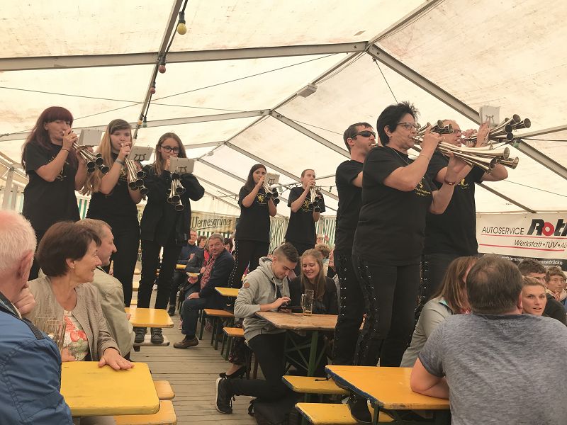 Die Auerbacher Schallmeien rockten im Anschluss das Bierzelt durch und testeten die Bierzeltgarnituren auf ihre Festigkeit. Ein toller Sonntag-Vormittag ging zu Ende! Danke den Hammerbrücker Kameraden für die Gastfreundschaft!