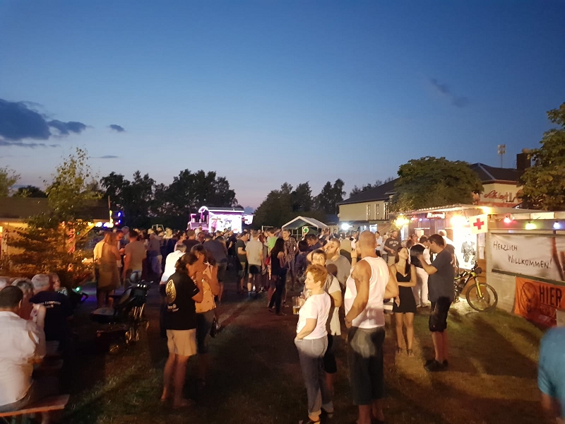 Durch die große Hitze war es bis zum späten Abend extrem heiß im Zelt, was natürlich der Stimmung nicht zuträglich war. Wer mag schon leere Festzelte. Draußen drängte sich hingegen ein Menschenmeer.
