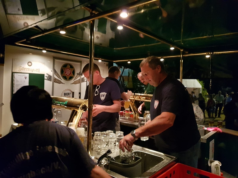 Stoßartig strömten dann alle Gäste und Teilnehmer zu den Zapfhähnen und Speisenangeboten, manche gönnten sich vorab auch ein Eis.