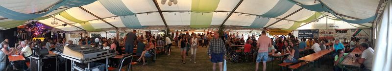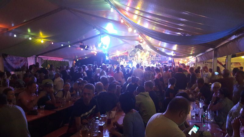 Man kann nur schlecht die vielen Besucher an diesem lauwarmen Montagabend zählen. Vielleicht waren es 1500, vielleicht auch 2000 Gäste. Fakt ist, dass Zelt und das gesamte Außengelände waren rappelvoll und wie immer das Dorf zugeparkt!