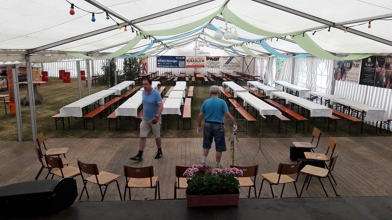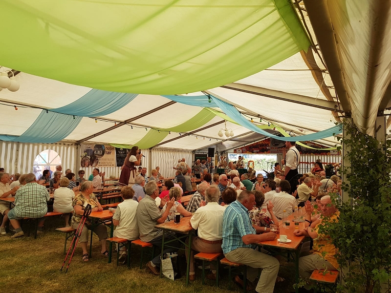Zur Blasmusik der Band "Die Böhmischen Vogtländer" wagten sich einige Fans , trotz großer Wärme auf den Tanzboden. Und nachdem der Kuchenabsatz am Samstag schleppend lief und am Sonntag eine neue Ladung an leckeren frisch gebackenen Kuchen anrollten, hatten manche Kuchenverkäufer schon Sorgenfalten auf Grund des übervollen Kühlcontainers. Am Ende war alles ausverkauft! Riesen herzlichen Dank den Bäckern, den Verkäufern und vor allem den Käufern!
