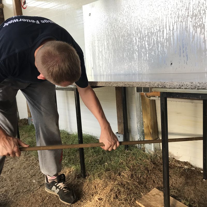 Am nächsten morgen wurde echt rangeklotzt! Bierwagen abgeschlossen, Elektrik zurückgebaut etc. Die bereits vorgereinigten Grillhütten wurden mittel Fettlöser und Heißdampfkärcher gereinigt. Dämnächst findet die Abnahme der Gemeinde für den nächsten Nutzer satt. Auch im Feuerwehrhaus lichten sich die zurückgebrachten Kirmeskartons in den hallen und finden so langsam wieder ihren Platz in den Bodenkammern.