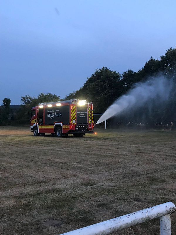 Nebenbei wurde Fußballplatz unserer Kicker durch die Feuerwehren Muldenberg und Grünbach bewässert. Vieleicht erstrahlt er ja doch noch in etwas grünem Schein!