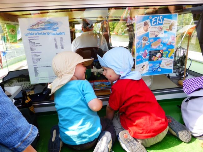 Die Rundfahrt führte uns erneut an den alten Fischerhäusern, aber wasserseits vorbei und hatte nicht nur für uns Großen, sondern auch für unsere Kleinsten viel spannendes zu bieten! Eine kleine Havarie gab es dann auch in einem der beiden Schleusengänge. Sie wollte einfach nicht aufgehen und einige der Feuerwehrkameraden planten bereits die Evakuierung aller Gäste. Aber am Ende schoß das Wasser doch in das Schleusenbauwerk und das Schiff erreichte die Wasserhöhe zur Weiterfahrt.